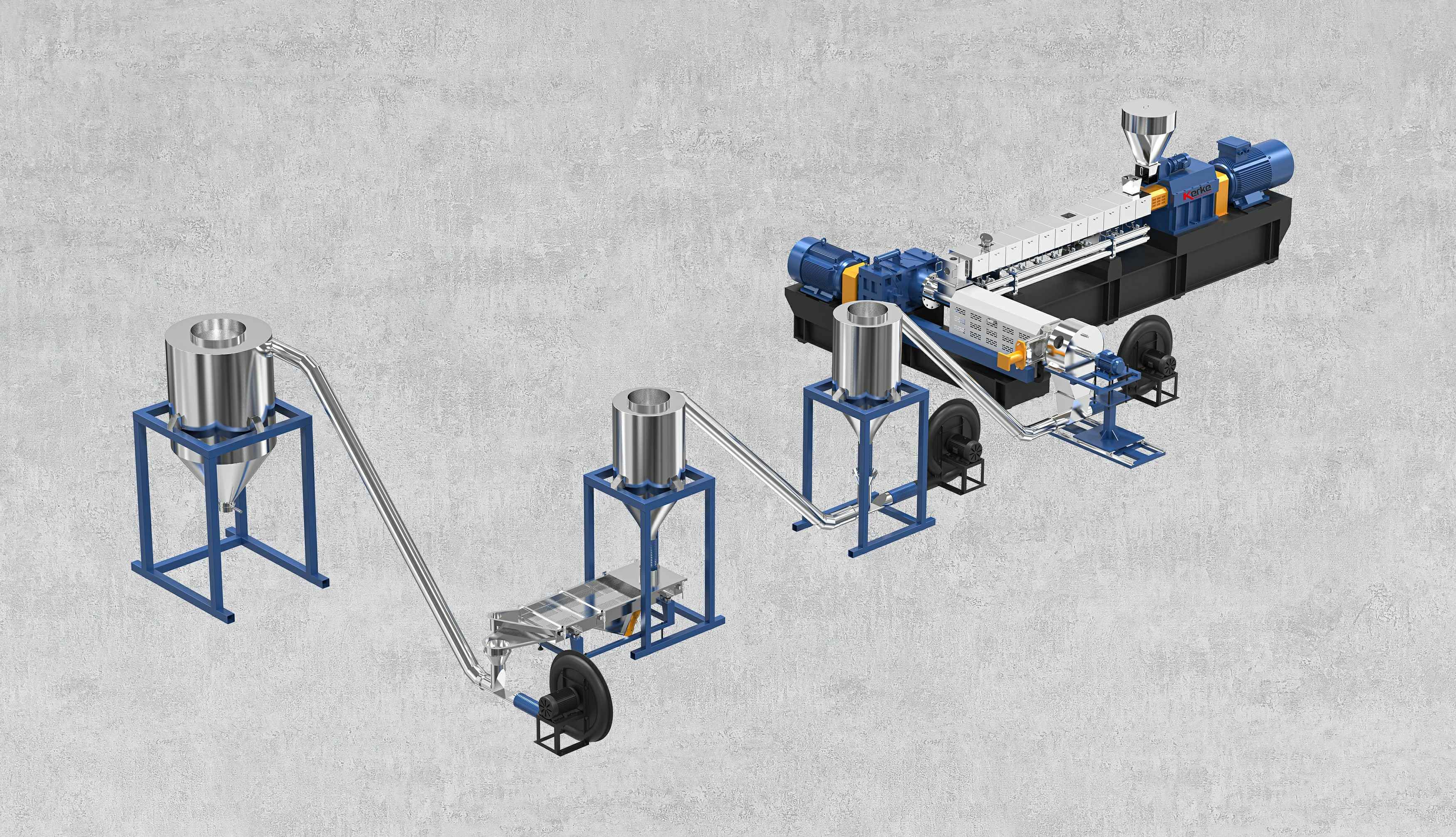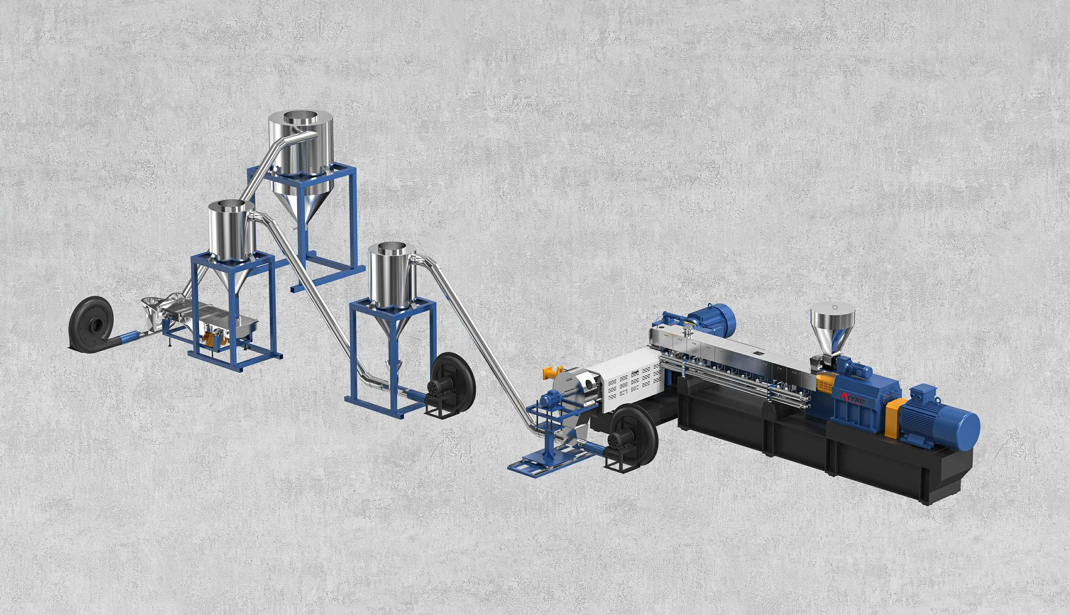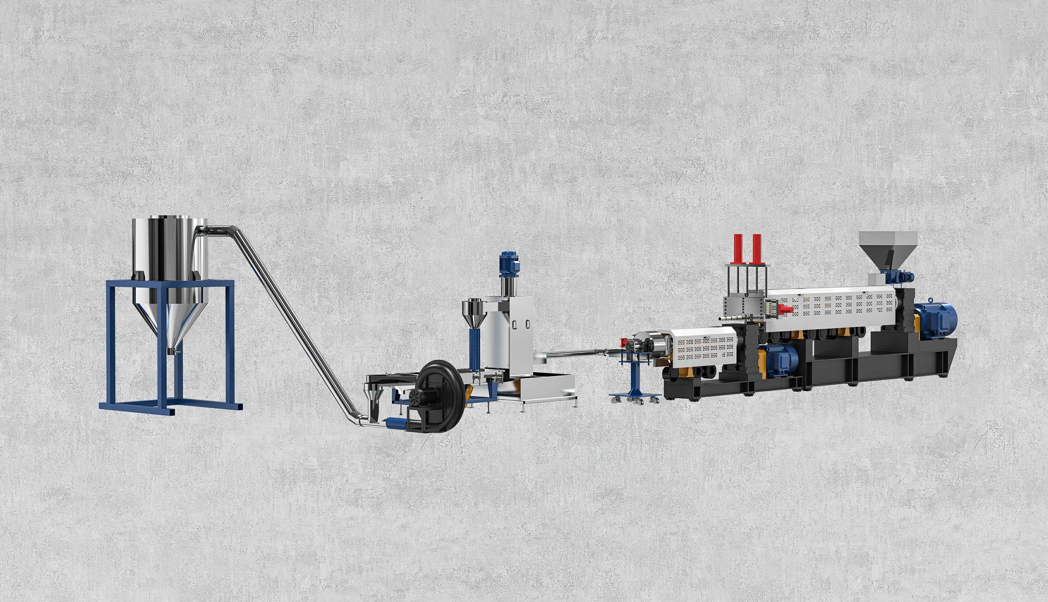 1.Main feeder | 2.Twin screw extruder | 3.Single screw extruder |