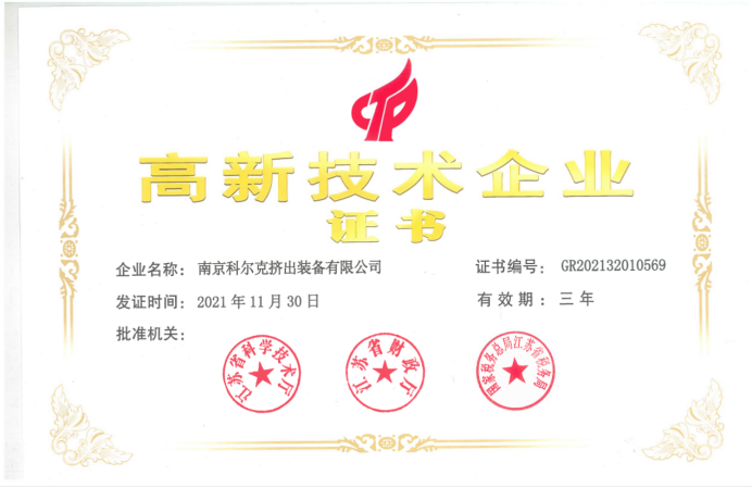 科爾克經歷十多年兢兢業業發展,埋頭研究雙螺桿制造技術的跨越提升,獲得14項專利證書,并于2018年首次獲得高新技術企業證書。至今年已是第四年。