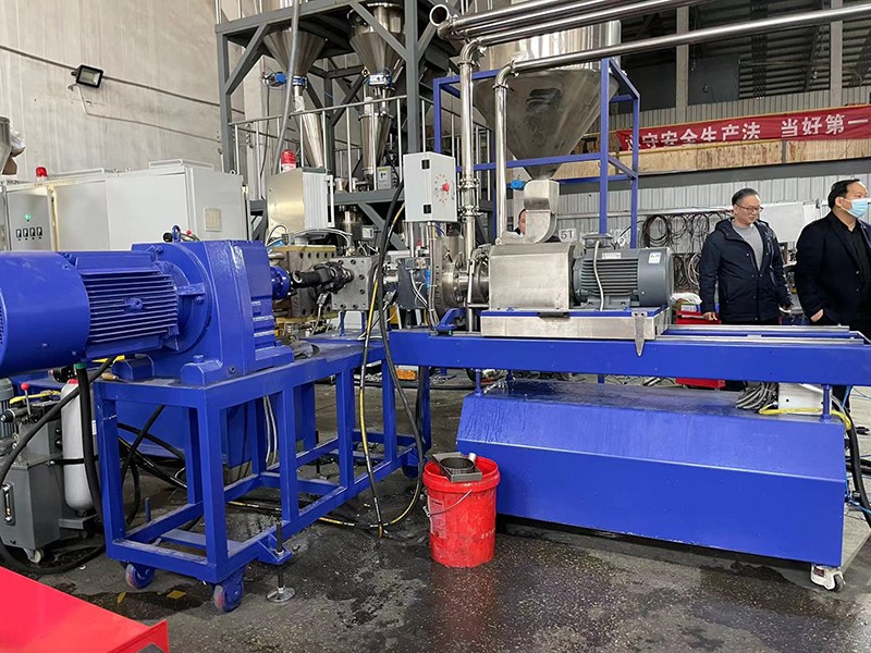 驗收PVB夾膠玻璃回收造粒-KTE-75D雙螺桿水下切造粒機組